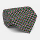 This fun tie features lines of cartoon style pigs. The hogs are in alternating lines of pink and blue and green and orange. The background colour of the tie itself is black.