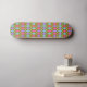 This awesome skateboard has an abstract pattern with rows of pink blue and purple diamonds on it. Each row is separated by a row of dark green diamonds. Each of the dark green diamonds has a hole in the middle of it through which you can see the beautiful colour of the wood. This deck would look so cool while you are trying out your latest tricks at the skate park or on the streets.