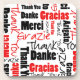 Keep your furniture safe and say thanks to your guests with this square coaster designed with red and black "Thank You" written in several languages and a variety of font styles over white.