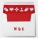 Bring touch of geeky, video game-themed fun to your event with custom envelopes featuring a cherry red directional pad on the front in the bottom right corner, a matching D-pad on the back flap, and initials that you can change to match your own on the back underneath. A final note of decoration can be found on the inside with a bright cherry interior decorated with a pattern of D-pads, 8-bit hearts, joysticks, and a computer mouse adorning the envelope just under the flap where the design will add a nice accent as your guests retrieve their invitation. Be sure to check out the full Multiplayer Mode in Cherry collection to find more products, including invitations, guest books, return address labels, and even favour boxes, with matching designs that will allow for a truly coordinated wedding or special event.