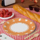 Add a fun, coordinated touch to your rehearsal dinner, bridal shower, or even a more casual video game geek wedding with these paper plates, featuring a bright orange rim decorated with white 8-bit hearts, D-pads, joysticks, and computer mice, with a white banded centre section that completes the look.