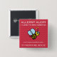 Allergy alert, I have to "bee" careful food allergy alert button. List allergens on this cute bumble bee design pin. Customise with name or other text to note 'epinephrine inside' Attach to medical bags, safe snack bags or book bags. Designs by Lil Allergy Advocates ww.lilallergyadvocates.com