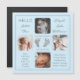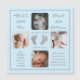Create a birth announcement that is as unique as your precious child with this "Hello Little One" four photo design featuring your baby's name, birth statistics, parents and siblings' names. In the centre are two template lines for your personal message or you can use ours. This messaging is on top and bottom of your child's optional footprints (add left and right separately). All text and background colours can be modified as desired. Shown here in blue. Design by Holiday Hearts Designs (rights reserved) with template placeholder photos via Unsplash.