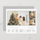 Small 4.5" x 5.6" semi-gloss 110 lb. paper, your three favourite photos and the words Happy Holidays in chic silver lettering are printed on the front of these budget Christmas holiday photo greeting cards with your message and names on the back. Be sure to double-check your order before adding it to your cart as what you see on the screen is what will be printed. The Live Design Service can help you with your design layout if needed.