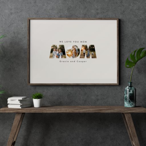 Mum 3 photo modern typography gift. Ideal for contemporary elegant mothers day, birthdays or Christmas gifts. Modern black and white design, colour can u=be customised to suit your decor and style.