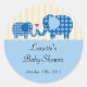 Sweet and modern baby boy shower gift or favour sticker. Features mum and baby elephant facing each other with a heart to symbolise their love. Look for matching invitation, postage stamp, address label and thank you card. This design is available in other colour combination.