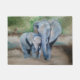 This door mat features a reproduction of a custom oil painting of a Mother and Baby Elephant - Perfect for any animal or art inspired home or nursery!