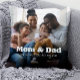 Mum and Dad | Boho Text Overlay with Two Photos Cushion