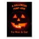 The toothy grin of a Jack o' Lantern is featured on this Halloween card for Mum and Dad. Surprise your parents with this cute Halloween card with a pump-grin. Art, image, and verse copyright © Shoaff Ballanger Studios, 2024.