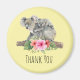 A thank you magnet with an adorable watercolor design. Koala bear mum and baby. Baby is riding on momma's back. Standing on a tree branch. A hibiscus flower bouquet below. Banana yellow background.