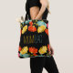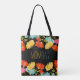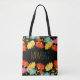 Modern colourful flowers on top and bottom over customisable black colour background. MOM BAG customisable text.