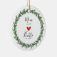 Simply perfect Christmas ornament featuring a green berry wreath & heart with year est. as a Mum and year est. as a Bubbe. A Wonder Christmas gift sure to be treasured for many years to come.