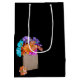 Colourful daisy bouquet in a brown paper sack on black for Mum.