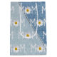Mum in white daisy flower and petals on denim blue background quilt pattern.