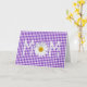 Birthday for mum with daisy text in flower petals on purple and white gingham quilted background