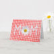 Birthday for mum with daisy text in flower petals on red and white gingham background with faded effect