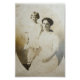 Mum & Daughter Oval Mask Foxed RPPC BW Photo Image Print