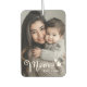 Car air freshener featuring your custom photo and the text "Mum" in a cute calligraphy script font along with hearts and year as a white an overlay.