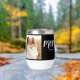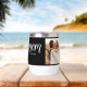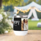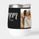 Sleek white and black thermal wine tumbler with elegant white Mum Est. script and your personalised photo. A stylish, heartfelt keepsake that keeps drinks hot or cold for busy moms on the go.