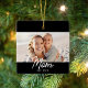 This is a lovely ornament, and great that you personalise the back with details of birthday, weight, etc.. My only tiny disappointment is the "My First" doesn't stand out very well on the background. More than happy with the printing of the photo and the writing on the back.