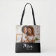 Being a mum is one of the most important jobs in the world. Show your favourite mum that you care with this custom, minimal photo tote bag. Simple white script calligraphy and sans serif typography, along with your personalised photo, overlay a black tote bag. Personalise with the photo of your choice and the mum “established” year date when your first child was born. Add additional years for each child. And switch out “mum”, if desired, for however you call your mum or mum.