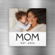 Mum Established Photo Gift - Minimal Elegant Black Classic Mum Typography - Give Mum the recognition she deserves with this fun black and white photo magnet. The word "MOM" appears in classic black typography on a white background, with the words "EST." ("Established") and the year below. Easily replace the sample photo with your favourite mum and baby photo. Edit the text to display one or more birth dates. Other short variants of "mum," such as "mum" or "mama," can be substituted. Makes a great gift for Mother's Day or Mum's birthday!