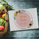 Elevate Mum's kitchen with our personalised glass cutting board. Featuring a beautiful design of a pink circle label with scalloped edges inside a gold frame that supports a beautiful wreath of sunflowers and eucalyptus greenery, and the heartwarming message, 'Mama's Kitchen: A Recipe for Happiness' in a gold hue. A perfect gift for Thanksgiving, radiating warmth and gratitude, or for Christmas, her birthday, Mother's Day or any other occasion. Order now!