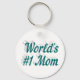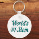 Key chain with World's #1 Mum in 3D blue-green text. Round and square key chains available in several sizes.