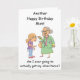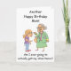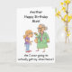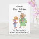 A cheeky, funny birthday card from daughter to Mum, pointing out that because she keeps having birthdays she's still not got her inheritance!