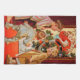 A funny vintage Christmas kitchen towel featuring three curious kids watching mum kissing Santa Claus.