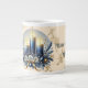 Your mum will really appreciate this beautiful blue candle mug on a sparkly ivory background with text "Merry Christmas" and "MOM"