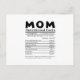 Show love and laughter with this fun and heartwarming “Mum Nutritional Facts” design — the perfect gift for every amazing mother! Styled like a nutrition label, this witty and adorable design lists all the essential “ingredients” that make moms so special: 100% Love, Patience, Sacrifice, Strength, and Caffeine! Whether it’s for Mother’s Day, her birthday, or just to remind her how appreciated she is, this design perfectly blends humour and affection.