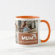 Show your mum (mother) your love with our personalised MOM photo collage mug. Our design design with a 4 photo collage design. "MOM" is displayed in white with white hearts and custom text. This special mug is the perfect gift to send to your mum for Mother's Day, birthday, Christmas, anniversaries, or a special gift to say how much you love them!