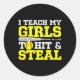 Mum Softball Dad I Teach My Girls To Hit And Steal Classic Round Sticker