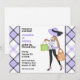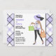 A gender neutral, simple and clean baby shower invite featuring a plaid pattern in lavender purple, black & white with a Mother to Be dressed so chic in matching maternity wear & hat. The new mum has a darker complexion and would work well for Latino or African American families.