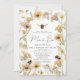 This elegant gender neutral " Mum-to-Bee " drive-by/drive-thru baby shower invitation features flying bumble bees and yellow daisies and white chamomile in watercolor. The reverse side features a white background with floral patterns. Personalise for your needs. You can find more matching products at my store.