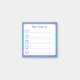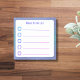 This mum to do list sticky notepad can be personalised with a different name. It is a small square 3x3 sticky notepad with shades of blue and purple text on a white background. There is a pseudo sparkly purple and blue border. You can change the text that says "To Do List" to some other type of list if you wish. There are check boxes next to each of 5 lines that can be ticked as each task is completed. Keep it simple with just 5 things to do!