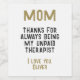 Mum Unpaid Therapist Funny Humour Mother's Day Wine Label. Funny Mother's day label with humourous quote ' Thanks for always being my unpaid therapist '. The text is in modern bold typography. You can change any text.