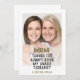 Mum Unpaid Therapist Funny Humour Photo Mother's Day Card. Funny Mother's day design with humourous quote ' Thanks for always being my unpaid therapist '. The text is in modern bold typography. You can change any text and add your names and photo.