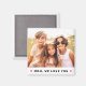 Magnet featuring your custom photo and the text "Mum, we love you" below flanked by hot pink hearts.
