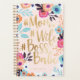 Our stylish boss babe planner commands attention with our bold hand-drawn pink, peach, blue and faux gold florals and bold stylish brush script "#Mum #Wife #Boss Babe"' typography design. A trendy light blush pink background beautifully complements the bold flower print. Personalise the planner with name. The reverse side features our bold floral pattern print. All illustrations contained in our boss babe florals design are hand-drawn original artwork by Moodthology. You can change the background colour to suit your own personal design preference.