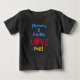 Mummy and Daddy Love Me T-shirts, long sleeve tees, sweatshirts,pullover hoodies, hats, ruffle shirts, sleeveless dresses, ruffle dresses, raglan T-shirts, football bodysuits, organic bodysuits, and other apparel for baby with text of red, blue, and gold with a heart that reads Mummy and Daddy Love Me!