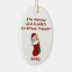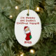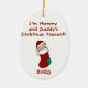 You can personalise the back and change the date on this cute baby's first Christmas keepsake ornament featuring a baby in a red Christmas stocking and kid style text that reads "I'm Mummy and Daddy's Christmas Present!"