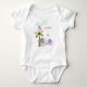 Cute elephant baby body suit with mum and baby elephant. This watercolor jungle scene has cute elephants bursting with love and a palm tree, summer sky and balloons. Mummy + Me is fully editable and lettered in whimsical typography in lilac. Perfect gift for baby shower, new baby, 1st birthday, mother's day etc.