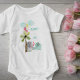 Cute elephant baby body suit with mum and baby elephant. This watercolor jungle scene has cute elephants bursting with love and a palm tree, summer sky and balloons. Mummy + Me is fully editable and lettered in whimsical typography in light teal. Perfect gift for baby shower, new baby, 1st birthday, mother's day etc.