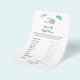 This Mummy Baby Elephant with Clouds "Guess the Right Price" game is perfect for a safari theme, gender neutral baby shower or sprinkle. The design features a cute mother baby elephant duo in grey and teal with polka dot clouds and calligraphy. Personalise the game card with the mother-to-be and the date.