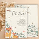 Surrounding the deer are lush watercolor plants, adding a touch of nature’s serenity and beauty. Scattered among the greenery are delicate bees and a butterfly, enhancing the natural, serene atmosphere of the invitation.