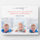 Adorable photo plaque using 3 of your favourite photos. The template is set up for you to personalise the wording which currently reads "mummy I love you so much my heart could explode into a million kisses [baby name] xoxo". The wording is lettered in elegant script and modern print in coral and deep blue on a white background. If you wish to edit the colouring, please click customise to enter the design tool or message us for assistance. Please browse our store for more baby photo gifts for a new mum.