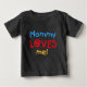 Mummy Loves Me dark T-shirts, long sleeve tees, sweatshirts, and pullover hoodies for baby with text of red, blue, and gold with a heart that reads Mummy Loves Me!