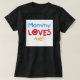Mummy Loves Me T-shirts, long sleeve tees, bodysuits, organic bodysuits, sleeveless dresses, ruffle shirts, ruffle dresses, hats, raglan T-shirts, and other apparel for baby with blue, red, and gold text and heart design that reads Mummy Loves Me!